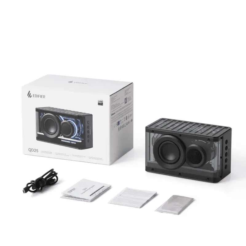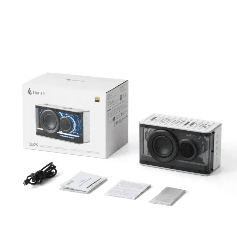 Loa Bluetooth Edifier QD25 là một mẫu loa để bàn (tabletop) thiết kế nhỏ gọn, hướng tới người dùng muốn âm thanh chất lượng cao cho phòng làm việc, phòng khách nhỏ hoặc những chuyến đi ngắn. Sản phẩm kết hợp driver mid-bass 2.5″ và tweeter 0.75″ cùng với màng thụ động (passive radiator) để tăng cường dải trầm, sử dụng khuếch đại Class-D hiệu suất cao, đạt tổng công suất 25W RMS.